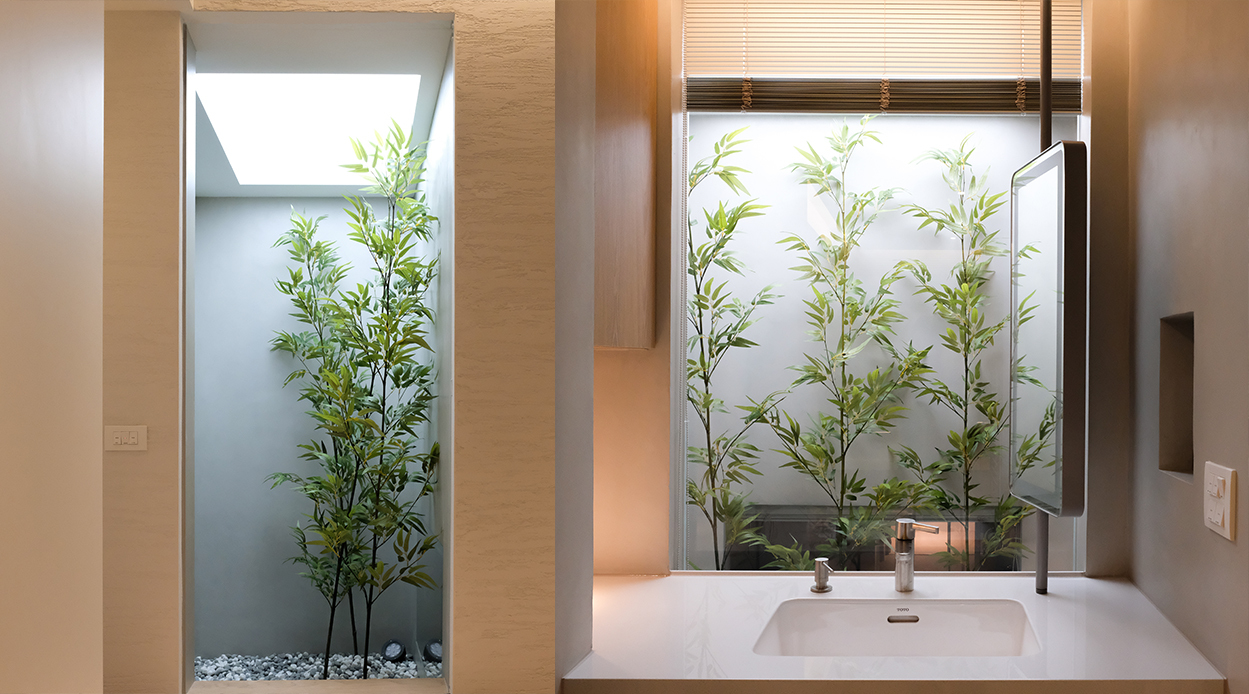 天光綠意擁抱的診所 , 高挑天井與自然植栽