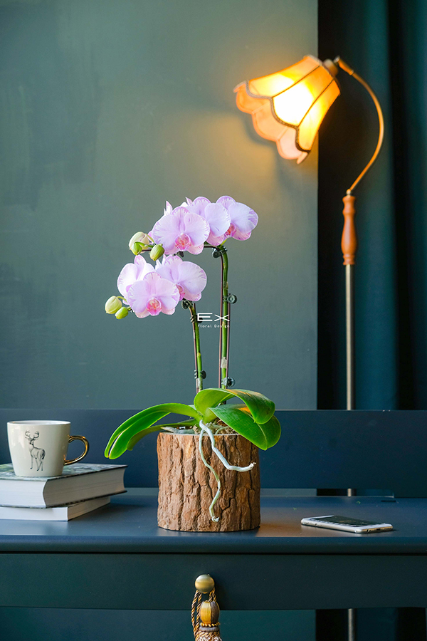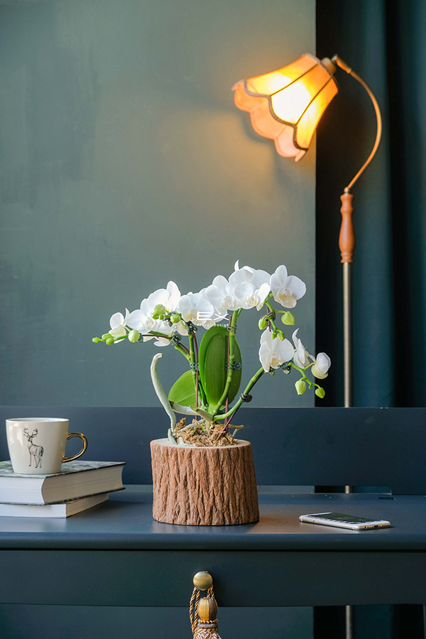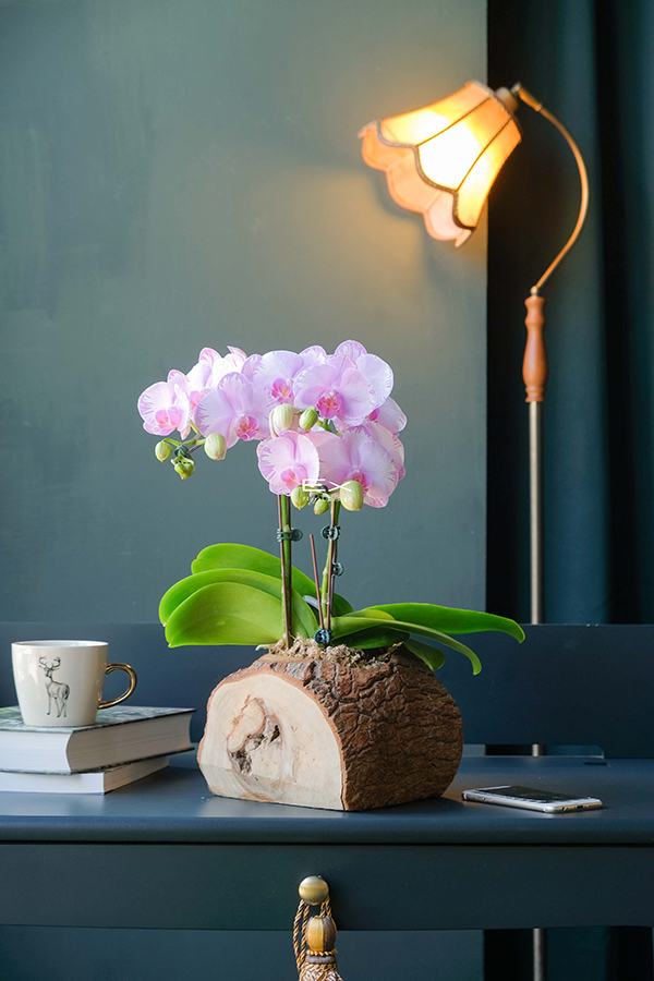 淡雅蝴蝶蘭,搭配溫潤木質花器
