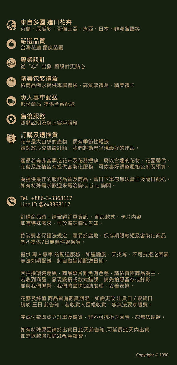 但請放心交給設計師,以同等價位花品替代將為您呈現最好的作品 !