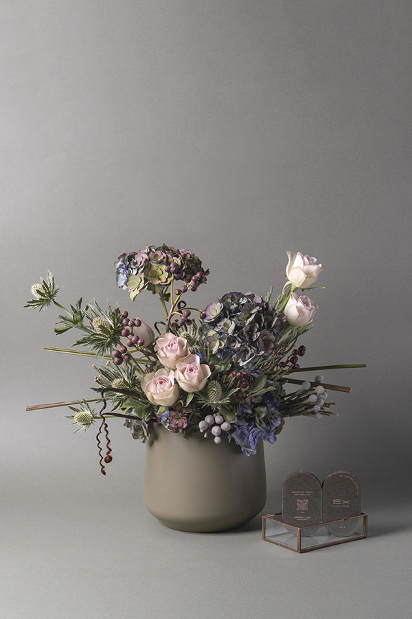 參考花材 : 歐系古典繡球, 白薊花, 濱海刺芹, 進口銀果