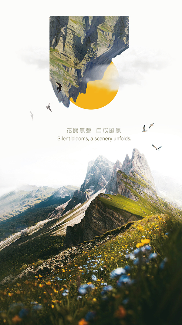透過獨特錯視構圖,茶杯與花朵彷彿渾然天成,如同茶香生花。意境躍然眼前。