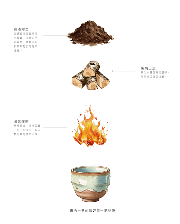 岩雪杯造型紋路皆不同,手拉成形再以手工刻鑿,