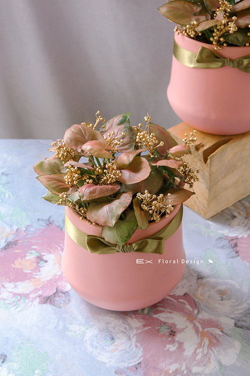 ExFloralDesign 花藝設計 義興花藝 花 花藝師 桃園花店 台北花店 花店 洋桔梗 進口玫瑰 情人節 2/14 情人節 情人節花束 送愛人 愛情 女朋友 質感 告白 合果芋 粉金色 甜甜的祝福 居家 綠植 愛